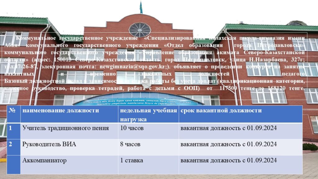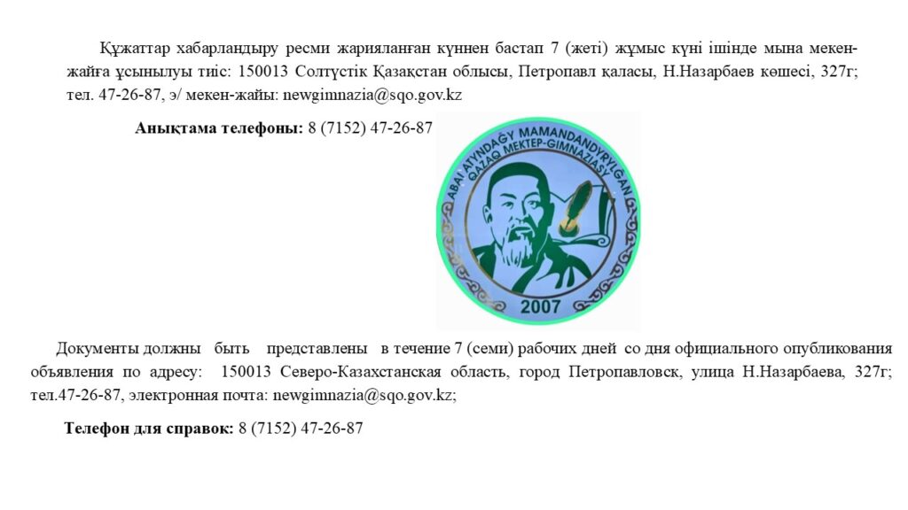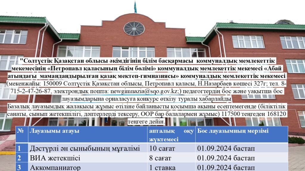 Педагогтердің бос және уақытша бос лауазымдарына орналасуға конкурс