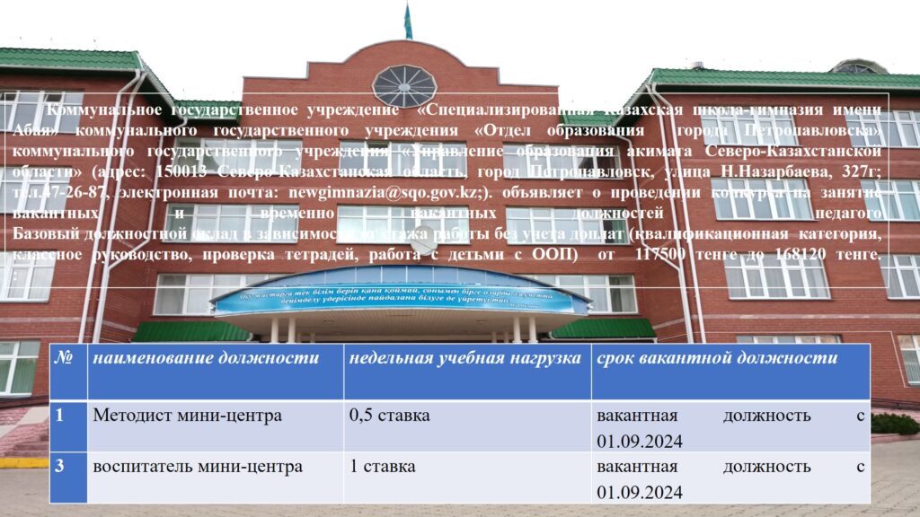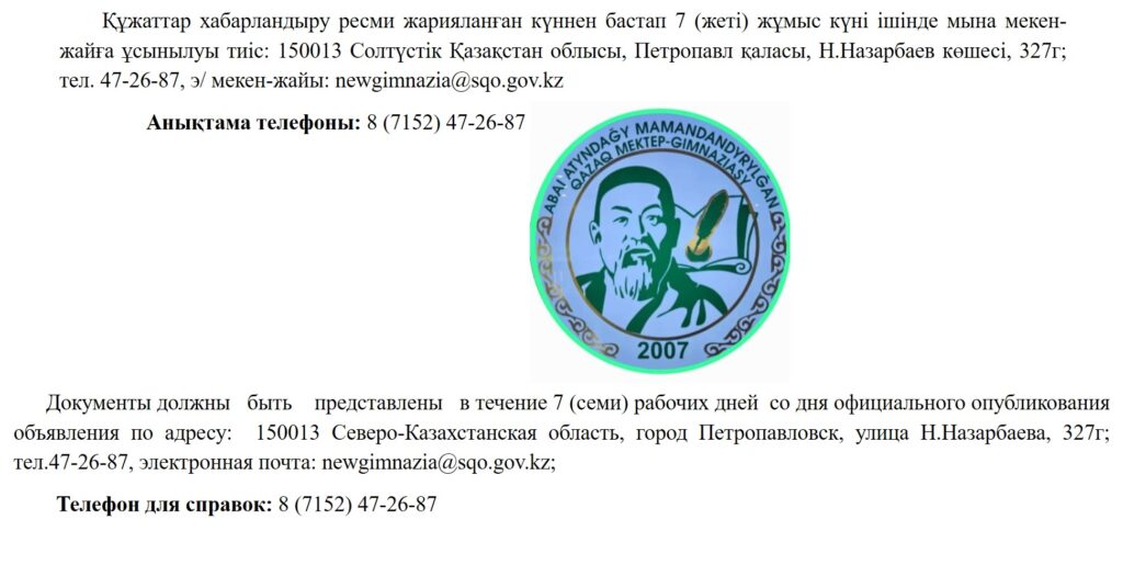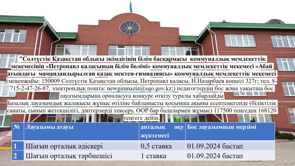 Педагогтердің бос және уақытша бос лауазымдарына орналасуға конкурсAugust 2, 2024August 3, 2024 Leave a Reply Cancel replyYour email address will not be published. Required fields are marked *Name * Email * Website Comment * Save my name, email, and website in this browser for the next time I comment.